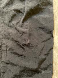 Il materiale è leggero, resistente e leggermente opaco, ideale per tutte le stagioni. Dettagli principali: Vestibilità: Taglio ampio (baggy) con fondo gamba elasticizzato. Vita: Elastica con coulisse regolabile per il massimo comfort. Tasche: Presenti tasche laterali con chiusura a zip (molto comode e sicure). Condizioni: Ottime, leggero segno di usura indicato nella foto. Tag #parachutepants #streetwear #trackpants #gorpcore #baggy #techwear #pantaloni #unisex