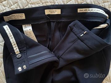 Pantaloni a sigaretta Peserico, colore blù, taglia 40 ital. in 64%poliestere , 27% viscosa e 8% cotone. Pochissimo usati. Lunghezza totale cm 93, possibilità di allungare altri 6 cm.