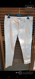 Pantaloni marca Pinko in cotone , color rosa pallido/beige con bordure laterali con strass, taglia 30 , 44-46