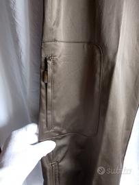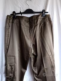 Bellissimo pantaloni tipo pinocchietto di Marina Rinaldi, taglia 19, colore marrone, con tasche alle laterali e nelle gambe, apertura a zip delle gambe, tessuto di alta qualità: 66% cotone, 29% poliestere e 5% elastane, risulta lucido è comodo. Nuovo con cartellino.