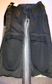 Vendo pantaloni da moto usati da mia moglie, in jeans tecnico CERTIFICATO con protezioni omologate sulle ginocchia (incluse) e rinforzi in Twaron nelle zone piu' esposte. Usati 4-5 volte; li vendo solo per cambio di misura, ma ho già preso altro paio sempre della PMJ.