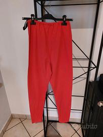Pantaloni blu premaman Prenatal in pannetto tg. M. Orlo in vita un po' scucito. Leggings rossi premaman Prenatal taglia S.