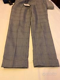 Bellissimi pantaloni con strass di brillantini, in fantasia leggera tartan. Mai usati come nuovi, vedi cartellino.