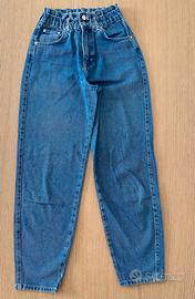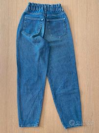 Pantaloni Pull & Bear in jeans colore blu, vita alta con passanti ed elastico, modello 5 tasche, gamba morbida più stretta sul fondo. TG EUR 34