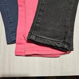 Lotto di tre pantaloni per ragazza. - Pantaloni blu (Emanuela Costa jeans) - Pantaloni rosa ( Kaïdi tregging) - Pantaloni nero Tutti senza cerniera