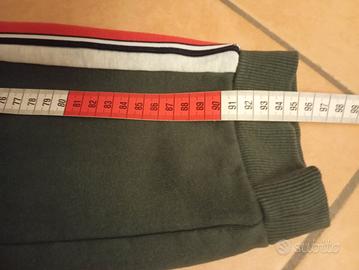 Pantaloni ragazzo 14+anni (170 cm) Maui &Sons 100%cotone felpato, caldi, ideali per inverno, due tasche davanti, coulisse in vita, colore verde militare con striscie a fianchi color grigio chiaro/rosso/nero, ottimo stato senza difetti, misure in foto.