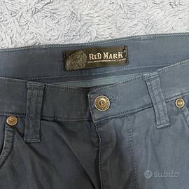 Vendo pantaloni da uomo firmati Red Mark, modello a 5 tasche dal taglio classico e versatile. Il tessuto è un velluto a coste finissime (micro-corduroy), molto morbido al tatto e perfetto per le mezze stagioni o l'inverno. Dettagli che fanno la differenza: Colore particolare: Una raffinata tonalità blu avio tendente al grigio, facile da abbinare sia con camicia che con maglione. Finiture curate: Bottoni e rivetti in metallo personalizzati con la scritta "Cotton & Denim". Praticità: Design a 5 tasche come un jeans, ma con l'eleganza del pantalone chino. Qualità: Brand Red Mark conosciuto per la solidità dei suoi capi. Condizioni: Il capo è in ottime condizioni generali. Il colore è uniforme e il tessuto non presenta segni evidenti di usura. Misure: Taglia: 48 IT (corrisponde a una 32 USA). Spedizione rapida. Se hai bisogno di misure precise (vita o lunghezza gamba), non esitare a scrivermi!
