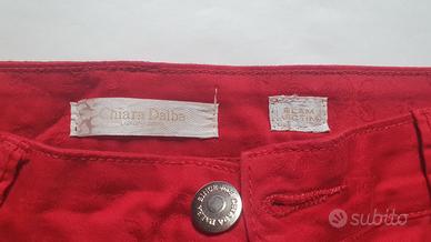 Pantaloni rossi in cotone, taglia M. Unico difetto è la targhetta dietro che è un pochino rovinata, come si vede in foto.