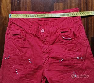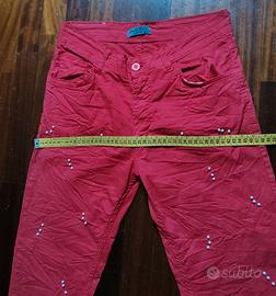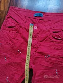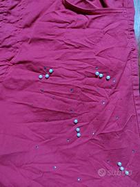 colore rosso con applicate perline e strass, tessuto di cotone leggero ed elasticizzato con effetto stropicciato