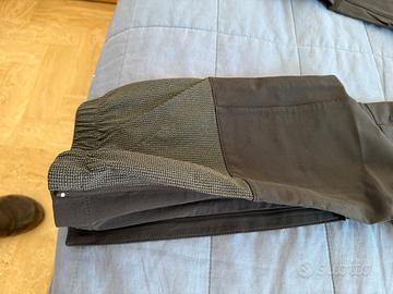 Vita elasticizzata con cintura incorporata tessuto rinforzato su ginocchia e clutei fondo gamba con tessuto paralamine e cerniera zip con elastico antiscivolo al silicone, prezzo €80