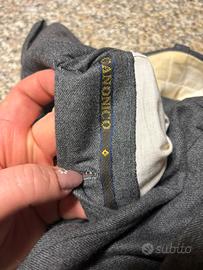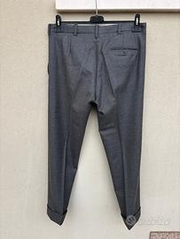 In vendita splendido paio di pantaloni sartoriali da uomo in colore grigio medio antracite, caratterizzati da un’eleganza senza tempo e una qualità costruttiva di alto livello. Il capo è realizzato con il celebre tessuto del lanificio italiano Vitale Barberis Canonico, eccellenza mondiale nella produzione di lane pregiate.