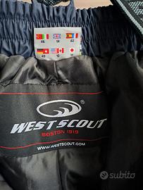 Pantaloni sci blu donna, taglia 46, West Scout, tasche con cerniera, elastico + cintura in velcro in vita e bretelle. Elastico sul fondo e cerniera