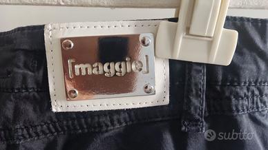 Pantaloni a sigaretta neri, a vita bassa, in cotone elasticizzato e molto leggero. Mai indossati (per cambio taglia della sottoscritta). Taglia americana 29, ovvero la 40/42 italiana.
