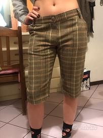 Indossati, ma ben conservati. Taglia M, fantasia scozzese, colore beige, marrone e grigio, 80% lana, 20% poliammide.