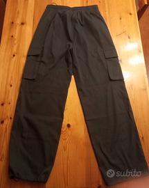 color grigio antracite, TG. M, vestibilità regolare, tasche a scomparsa sui fianchi e a vista sulla gamba, elastico e coulisse in vita e alle caviglie. Bellissimi, nuovi e mai indossati, vendo per errato acquisto.