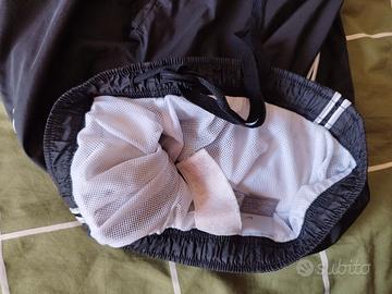 Pantaloni sportivi Nike, con bande laterali, cerniere sul fondo e retina interna. Colore nero con dettagli bianchi. Taglia S (173 cm). Ottime condizioni