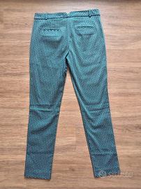 Pantaloni da donna della marca francese Promod, stampe vivaci e tagli curati, caratterizzato da una vestibilità aderente (slim fit), in un mix di cotone, poliammide ed elastan (spesso chiamato tessuto "techno" o elasticizzato) per garantire che mantengano la forma pur essendo molto comodi.
