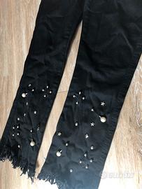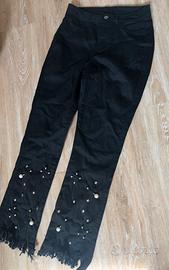 Pantaloni neri sfrangiati con strass di Calzedonia, taglia S. Modello straight alla caviglia. Nuovi con cartellino, vendo per taglia sbagliata.