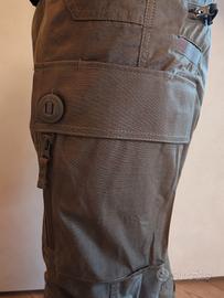 Pantaloni tattici Clawgear Raider MK V taglia S Pantaloni professionali in NYCO (50% nylon, 50% cotone) progettati per uso militare e operazioni di polizia. Vestibilità ergonomica con ginocchia preformate, cavallo senza cuciture e regolazione interna della posizione del ginocchio per massima libertà di movimento. Vita imbottita con spacer mesh e interno in microfleece, regolazione laterale con velcro e passanti per cinture fino a 60 mm. Rinforzi in nylon 500D su ginocchia e interno orlo per elevata resistenza all’abrasione; doppio strato sulle ginocchia con regolazione verticale. Ampia configurazione di tasche operative: tasche mani con scomparto per smartphone, tasche posteriori con zip, tasche laterali e due grandi tasche cargo con zip “quick-access”, scomparti per caricatori e loop interni, più tasche sul polpaccio per kit medico. Orlo regolabile con cordino nascosto e gancio anti-risalita; cerniere YKK. Caratteristiche principali Materiale: NYCO 50/50 (nylon/cotone) — durevole e traspirante Rinforzi: nylon 500D su ginocchia e interno orlo Vestibilità: ginocchia preformate, cavallo senza cuciture, regolazione ginocchio Vita: imbottita (spacer mesh), microfleece interno, regolazione con velcro Tasche: scomparto smartphone, tasche cargo quick-access, scomparti per riviste/caricatori, tasche polpaccio per kit medico Dettagli: passanti fino a 60 mm, orlo regolabile con cordino, gancio anti-risalita, cerniere YKK