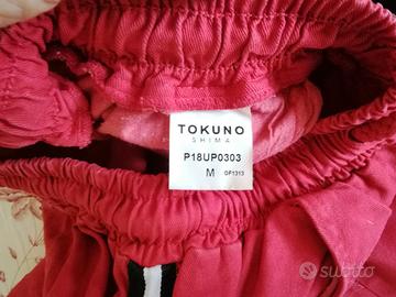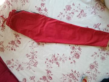 Pantalone Yokuno Shima in cotone rossi con banda laterale nera e bianca.