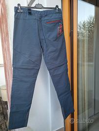 Pantaloni trekking Alpenplus, accorciabili, cerniera laterale parte terminale gamba, due tasche anteriori ed una tasca posteriore con cerniera, colore blu chiaro/grigio, taglia 50
