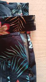 Pantaloni neri con stampe a fiori ,con tasche cerniera laterale e cintura da annodare