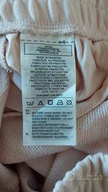 Bellissimi pantaloni della tuta firmati Adidas in una delicata tonalità di rosa pastello/cipria. Modello jogger con polsini alla caviglia e vita elasticizzata regolabile con laccetti. Perfetti per lo sport, il tempo libero o per un look casual super confortevole. Dettagli principali: Marca: Adidas (Originale, vedi etichette in foto) Colore: Rosa chiaro / Rosa pastello Taglia: XS (IT 36-38 / UK 4 / US XS) Materiale: 100% Cotone (tessuto principale), morbido e traspirante. Interno in spugna leggera (French Terry), ideale per le mezze stagioni. Stato: Ottime condizioni, indossati pochissimo. Dettagli estetici: Logo Adidas ricamato lateralmente e stampa grafica sulla parte inferiore della gamba posteriore. Misure precise (prese in piano): Lunghezza totale: circa 94 cm Larghezza fondo (polso caviglia): circa 13 cm Perché acquistarli? Questi pantaloni uniscono lo stile iconico di Adidas alla massima comodità. Il colore è molto attuale e facile da abbinare. La qualità del cotone garantisce resistenza ai lavaggi e comfort sulla pelle.