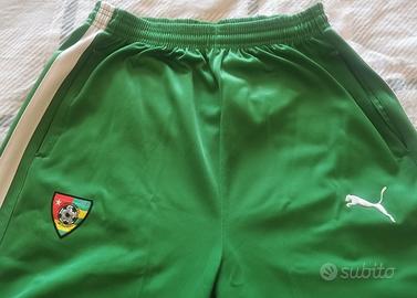 Vendo pantaloni tuta da uomo della nazionale di calcio del Togo, marca Puma. Sono taglia L di vestibilità normale, di colore verde con inserti bianchi. Presenta il logo Puma cucito sulla gamba sinistra ed il logo della Nazionale del Togo su quella sinistra. Sono in BUONE condizioni, non presentano difetti estetici evidenti. SONO IN PRONTA CONSEGNA!!!