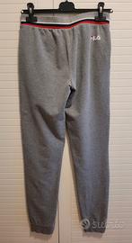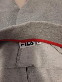 Pantaloni tuta grigi da donna Fila taglia M . Segnalo etichetta lavaggio tagliata come da ultima foto. lunghezza totale gamba cm 100, dal cavallo 72 cm. larghezza elastico vita cm 35 se tirato max 47 cm
