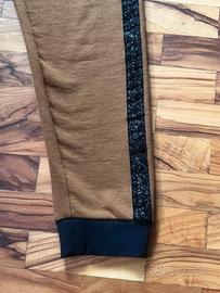 Pantaloni tuta donna taglia M - Black Dot Modello super comodo e trendy, colore cammello con inserti laterali glitter neri che li rendono unici. Perfetti sia per stare comodi che per un look casual curato. Ottima vestibilità grazie alla vita elastica. Condizioni molto buone.