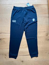 Vendo pantaloni della tuta da uomo color fisi blue. Personalizzazioni Team e loghi EA7, Audi e Falconeri. Nuovo con etichette: oggetto nuovo, non usato e non indossato. Taglia Large.