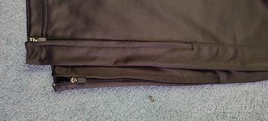 Pantalone da tuta nero con zip alle caviglie, due tasche con zip e lacci a scomparsa, con scritta e logo in argento; felpa corrispondente nel mio armadio.