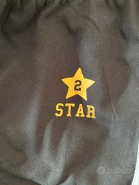 Pantaloni tuta neri con strisce bianche. Taglia XL da bambina, quindi corrisponde ad una M da donna. Il tessuto è molto morbido. Usato pochissimo.
