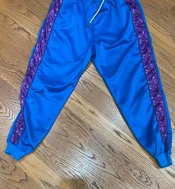 Pantaloni sportivi/streetwear dal colore blu elettrico molto acceso, con bande laterali viola a contrasto che li rendono particolari e super visibili. ✔️ Vestibilità comoda e regular fit ✔️ Ideali per sport, tempo libero o look streetwear ✔️ Tessuto morbido e confortevole ✔️ Ottime condizioni (pari al nuovo / molto ben tenuti) Perfetti da abbinare a felpe oversize, sneakers o outfit casual quotidiani.
