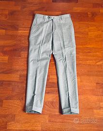 Pantaloni Boggi Milano in pregiata flanella di lana di color grigio ghiaccio, caratterizzati da un taglio contemporaneo con raffinata pince singola. Il design include una piega centrale stirata e il classico risvolto al fondo, dettagli che esaltano l'eleganza sartoriale italiana. Estremamente versatili, si prestano sia a look business con blazer sia a outfit smart-casual con una polo. Taglia: IT 46 (S/M) Misure: Lunghezza totale 100cm Altezza cavallo 75cm Larghezza vita misurata in linea 39cm Condizioni: come nuovi Le foto sono parte integrante della descrizione #Brioni #BrioniOfficial #LuxuryMenswear #MadeInItaly #BespokeLuxury #QuietLuxury #Sartorial #WhitePants #PantaloniBianchi #WhiteDenim #SummerStyle #OldMoneyAesthetic #MensTailoring #loropiana #santoni #zegna #cuccinelli #cashemere #loafers #yatchclub #oldmoney #oldmoneystyle