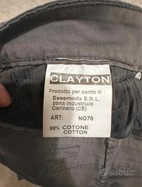 Vendo pantaloni uomo Clayton, colore grigio scuro, modello a 5 tasche. Realizzati in 98% cotone e 2% elastan per un comfort ottimale e una vestibilità leggermente elasticizzata.