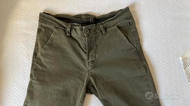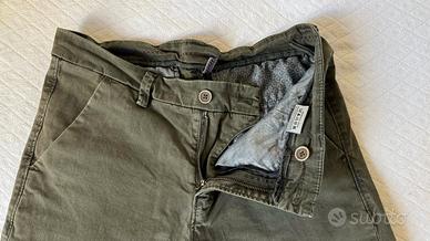Elasticizzati, comodi ed eleganti. Cotone 97%. Taglia 46. Tasche all'americana. Colore verdone. lavorazione totalmente artigianale