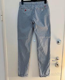 Vendo un paio di pantaloni estivi da uomo Hermont & Blaine, taglio elegante-casual, a righe bianche e azzurre – perfetti per l’estate, per un aperitivo vista mare o semplicemente per sentirti in vacanza anche in città.