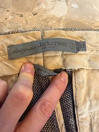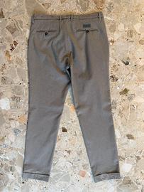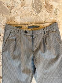 Pantaloni eleganti da uomo marca Jeckerson. - Tessuto Jacquard con motivo a fili intrecciati - Tasche anteriori e posteriori. - Vita con passanti per cintura. - Chiusura con bottone e zip. - Risvolto alla caviglia - Made in Italy - Slip fit, in cotone elasticizzato - Taglia 32. Misure: misure vita 42, fianchi 52, lunghezza 97 cm davanti, 100 cm dietro In perfette condizioni come da foto.