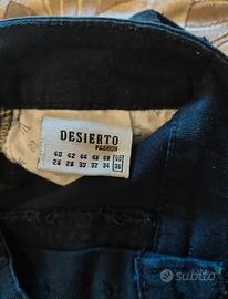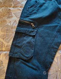 Questi pantaloni cargo del brand Desierto Jeans (marchio attivo dal 1985) si presentano in una colorazione blu scuro intensa, quasi nera. Il design fonde l'estetica utility con un taglio moderno: caratterizzati dalle classiche tasche laterali a soffietto con patta, presentano anche dettagli tecnici come piccole zip decorative sopra i tasconi. Il taglio è funzionale, con cuciture rinforzate all'altezza del ginocchio per una maggiore resistenza. La chiusura è gestita da un classico bottone in tinta e la linea termina con un fondo a costine elasticizzato (stile jogger), che conferisce un aspetto dinamico e sportivo. Le etichette interne indicano una taglia 50 (IT), corrispondente a una 36 (US). #pantaloni #cargo #menswear #desiertojeans #stileurban #joggers #modaitaliana #streetwear #casualstyle #pantaloniginnastica #outfituomo