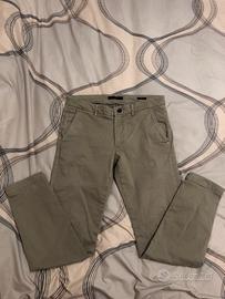 Vendo per inutilizzo, pantaloni uomo LIU JO slim fit, taglia 46, cotone, colore beige, con lampo, due tasche con bottoni, fessura per porta monete sulla tasca frontale dx, misure cavallo 75cm, vita 44 cm. Usati e in ottimo stato senza nessun particolare difetto.