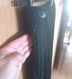 Pantaloni donna in pura lana vergine, con allacciatura sul fianco sinistro con bottone e cerniera, e piccolo spacco alle caviglie. Taglia 50