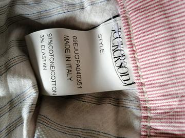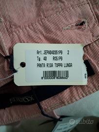 Pantaloni nuovi con etichetta. Millerighe bianco rosso. Taglia 40. Lunghezza 118 cm. giro vita 100 cm. Materiale 97% cotone, 3% elastan