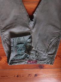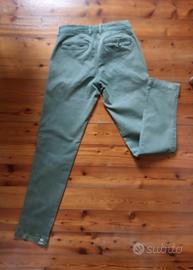 vendo pantaloni uomo slim, marchio OVS Premium, colore verde militare, chiusura a bottoni, casual