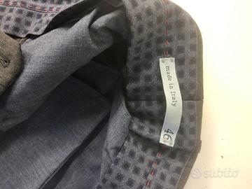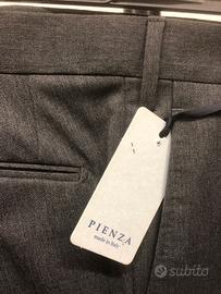 Pantaloni uomo foderati in lana Tasmania 100 % peso 240 gr. slim fit colore grigio tasche all'americana impunturate a 6 mm. e travettatura di rinfozo taschino due tasche dietro con bottoni e lunette di rinforzo chiusura con cerniera allacciatura con bottone interno e cinturino in cintura con bottone larghezza fondo cm. 18 - MADE IN ITALY