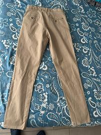 Pantaloni da uomo in tessuto color beige misura 42. - Vestibilità comoda. - Tasche frontali. - Chiusura con zip e bottone.