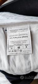 Pantaloni da uomo taglio dritto con piega, taglia 48 (vestono stretto), 100% pura lana vergine, colore blu scuro. Lunghezza (dalla vita all'orlo) cm 105; circonferenza cm 84