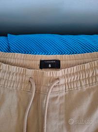 Pantaloni cargo da uomo in color sabbia. - Tasche laterali con chiusura regolabile - Coulisse in vita per una vestibilità personalizzata - Fondo gamba elasticizzato