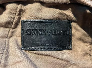 Pantaloni Giorgio Armani in velluto a coste sottili, colore tabacco chiaro (corrisponde in foto). Comodissimi, taglio perfetto. Condizioni ottime. Come si vede in foto, presenta qualche leggera sfregatura al cavallo e manca il bottone interno (si può cucire all'altezza desiderata).
