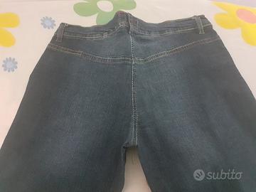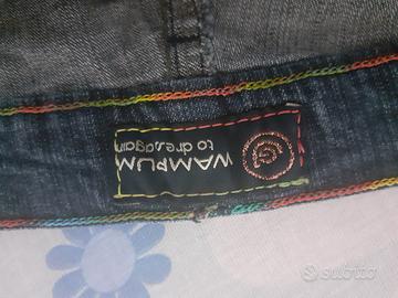 Vendo bellissimi jeans della Wampum, con decorazioni come da foto e cuciture colorate, taglia 46, NUOVI, mai indossati, tessuto elasticizzato, con 2 tasche con cerniera sul davanti, cerniera e bottone di chiusura.